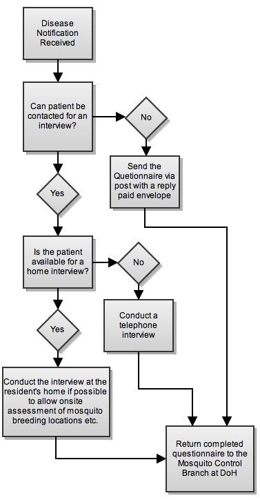 A number of communicable diseases are notifiable in Western Australia, however not all require follow up by an Environmental Health Officer. Notifiable enteric diseases are no longer investigated at local government level, this is now conducted by Ozfoodnet. Mosquito borne diseases however require the completion of a follow up questionnaire.